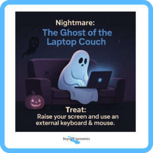 🍬 Treat: Elevate your laptop to eye level and use an external keyboard and mouse. Even a simple kitchen-table setup done right can break the curse.