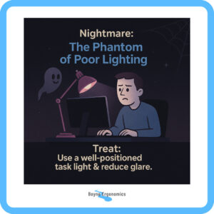 💀 Why it’s scary: Bad lighting causes digital eye strain, headaches, and fatigue. You might lean forward to see better, starting the cycle of poor posture all over again.