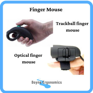 They come in two forms, the optical finger mouse and the trackball finger mouse. The optical finger mouse sits on your finger as you type. The trackball finger mouse is held in the handshake position by the index finger and the thumb operates the trackball and click buttons.