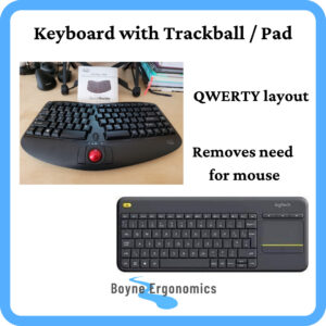 Keyboard with integrated trackballs and touchpads are useful for DSE users that want to eliminate the need for a mouse.