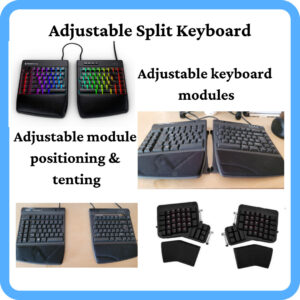 Adjustable split keyboards allow for improved positioning for both forearms and wrists as the position of the keyboard modules can be altered to suit stature. Most also have adjustable tenting.