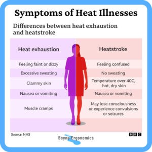According to HSENI, employees that are exposed to extreme heat can suffer symptoms that include discomfort, dehydration and exhaustion.