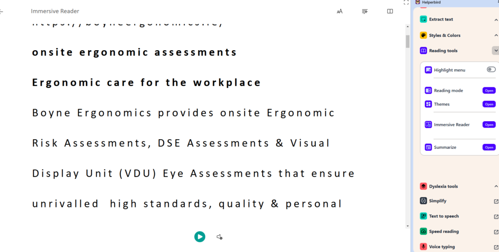 - Helperbird reads text aloud, allowing users to engage with content in an auditory way—ideal for those who learn better by listening or struggle with visual reading.
