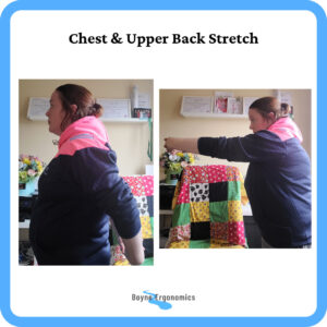 Below are examples of simple stretches that can be done at the desk, or better still, during movement breaks from the desk. If possible, I advise moving from the before carrying out these stretches to get the most from them.
