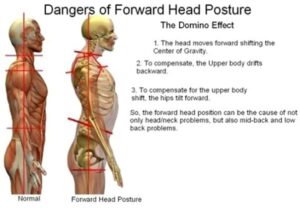 If these adverse postures become prevalent, it can cause the development of cervical kyphosis, the exaggerated forward curve of the vertebrae of the neck, along with weakened chest muscles and elongated upper back muscles.