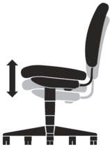 The most important feature of DSE seating is that it can be adjusted in height. The height adjustment allows the user to sit at the appropriate height for the work surface being used (elbows level with surface when shoulders are relaxed). Sitting too low or too high for the work surface causes poor postures, increasing the strain on the back, shoulders and neck.