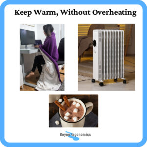 This can restrict movement and make it harder to type and operate the mouse, depending on the blanket and how you wear it! However, a nice cosy blanket over the chair can help make it feel more comfortable and warmer. Just ensure that it does not negatively impact your seated position or back support. On my mesh back chair, I sometimes use a gorgeous fleece patchwork blanket that a friend made for my eldest when she was born and it makes me feel instantly warmer.
