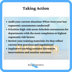 - Audit your current situation: When were your last ergonomic assessments conducted?